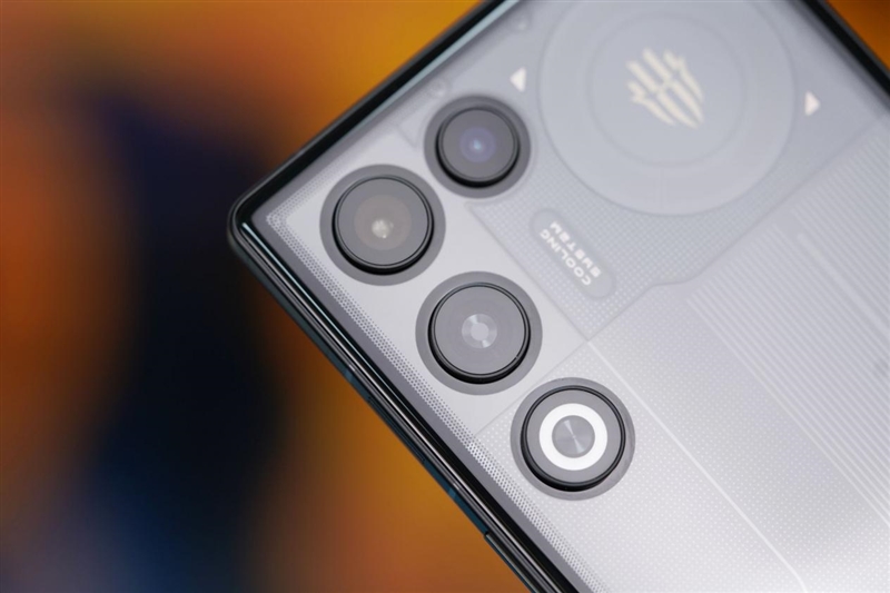相机Deco做的是简约的突起式设计,整体形状呈一个倒L形,主摄与超广角被置于顶部横置。闪光灯环位于最下方。中间则是本次红魔11 Air全新搭载的主动散热风扇。