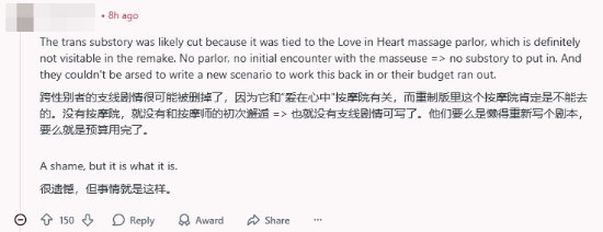 The Gamer简单分析了绫香这条支线被删除的原因,一种可能的解释是:该角色原型基于现实中的真实人物,并使用了其肖像权,如龙工作室或许无法继续保留这一设定。