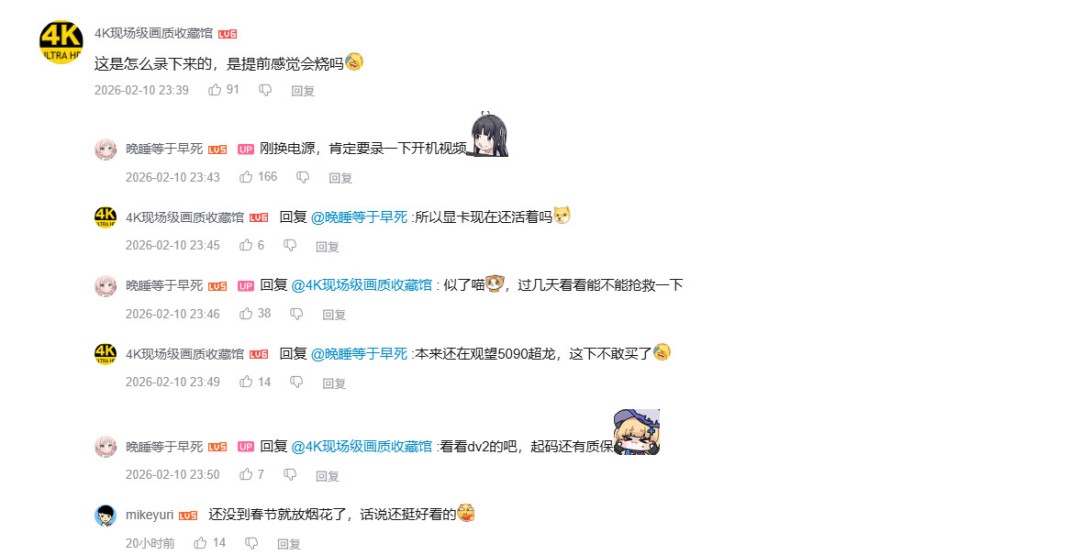在评论处,这名Up表示是显卡本身的问题,因为电源线和其他配件都能正常使用。