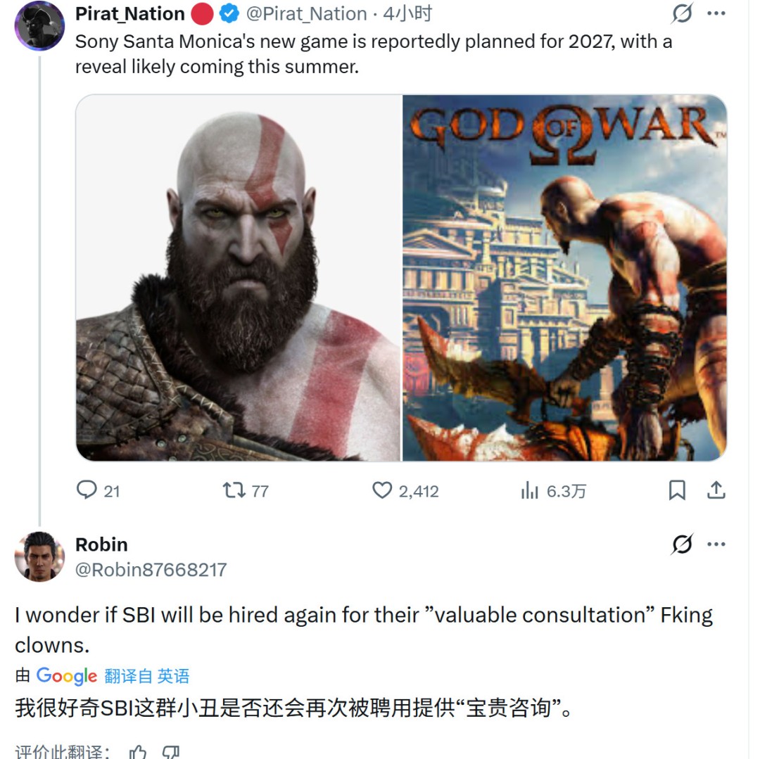 除了战神三部曲:重制版外,据说战神4总监Cory Barlog也在领军打造一个3A新作。国外舅舅@NateTheHate2爆料,这款新作有望在2027年发售,今年夏季公开。