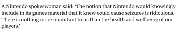 那又是为什么,游戏厂商后来又加入癫痫提醒的呢?大伙可能觉得,这还不简单,肯定是 1997 年的 3D 龙事件。