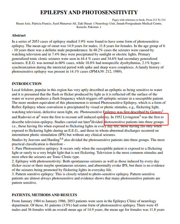 比如早在1952 年,就出现了第一例因电视导致癫痫发作的病例。