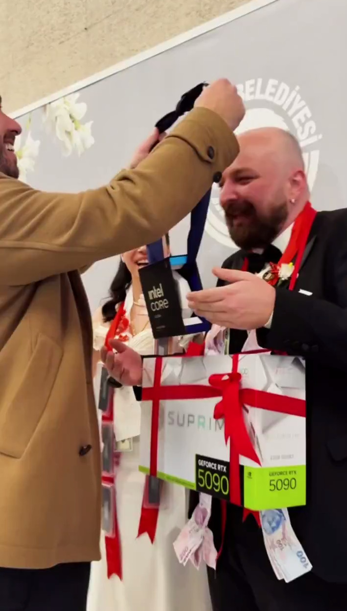 近日,土耳其一名男子给朋友送内存条和显卡作为结婚礼物的视频,在社交媒体上走红。这名男子没有送传统礼品,而是直接把高端显卡和内存条当作结婚礼物送给新郎,引发了网友围观与热议,更是羡煞了一旁的硬件党。