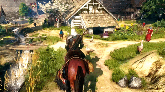 杰洛特漫游的这片大陆,NPC们有着堪称典范的中世纪作息:早上起床、白天工作、下午进城、晚上回家吃饭。下雨了知道躲雨,天黑了知道回屋——这些反应虽然基础,但恰恰构成了一片“呼吸感”十足的土地。