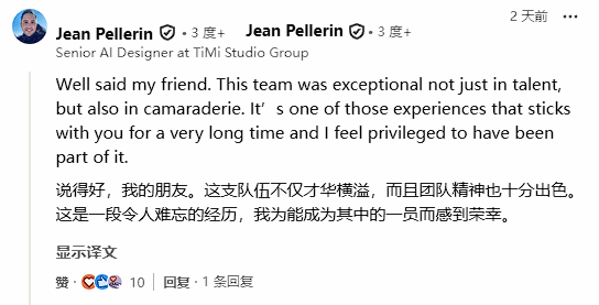 另一名高级设计师补充道:“这支团队不仅才华出众,彼此之间的情谊也非常深厚。这是一段会伴随你很久的经历,我很荣幸能成为其中一员。”
