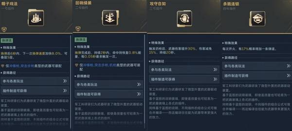 1号插件"帽子戏法",能够在换弹后6秒内,提升下一次换弹速度,可叠加。