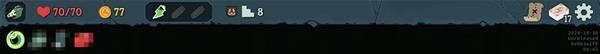 这在游戏的截图中已经出现了,但还是说明一下一些小变化。顶部栏的高度从64像素变成了80像素,这意味着顶部栏中的所有物品的点击范围扩大了25%,让你可以更加方便地选中药水、打开地图等等。同时我们让这里的文本变得更少了。再见了用户名,本来大家也都会在截图里给自己的名字打码嘛,我们也喜欢保护隐私!将来这块区域还会有更多东西,但是现在,就这样空出一些空间感觉挺好的。哦,不对,让我们先把这些遗物给打个码……