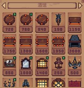 酒馆酒馆是最基础的初始建筑,这里的必需品是桌子,玩家需要放置桌子来赚钱,桌子越多,可以坐下的顾客越多,赚的钱就越多,其他的家具就是一些装饰品。