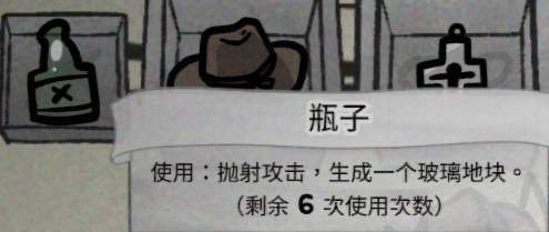 我们的五个初始装备中【瓶子】是非常良好的前期输出道具,能够增强我们的清怪速度,在对付部分敌人时有奇效(比如爱丢夹子的猫),【噩梦之帽】配合【瓶子】和【影袭】增加我们的一回合的输出能力。【十字架】抵挡初始伤害,【老茧】是我们对盗贼生存问题做出的最优解,只要我们能够结束时有1点护盾,就可以永久获得护盾,只要滚雪球起来我们真正可以做到无熵通关,【圣心】能帮助我们输出,如果运气好就可以飞掉几个小怪,通过【噩梦之帽】获得平a次数,用平a继续触发【圣心】。