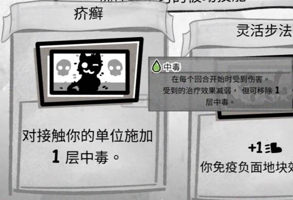 在第二场战斗中获得了【毒刃】,可以施加中毒,虽然在平时这个被动输出很慢,但在单猫的情况下,中毒dot对于多动的boss而言就是恐怖的存在,我们需要为自己进行铺路。配合上多次攻击就可以叠更多的毒,但可能在道中就表现平平了。