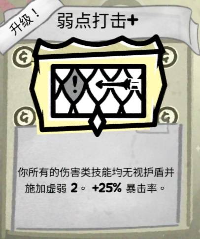 之后我们深入洞穴,升级了两个被动,【血肉模糊+】可以加4点伤害,让我们不至于一直挨打而没有还手的能力,【弱点打击+】则有额外+25%暴击几率,只能说给的实在不算很多。