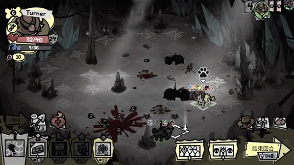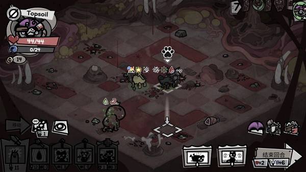 进入洞穴后,Topsoil的【呼噜+】起到了非常关键的作用,能帮助我们轻松摆脱蛛网的束缚,最后大蜘蛛被我们一口气用50层剧毒给暴死了,而我们几乎完全没有掉血。