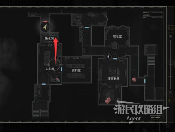 用接合插头通电,来到休憩室,桌上箱子里有【燃烧瓶合成配方】,显示器上有个【黑白浣熊先生7/25】。