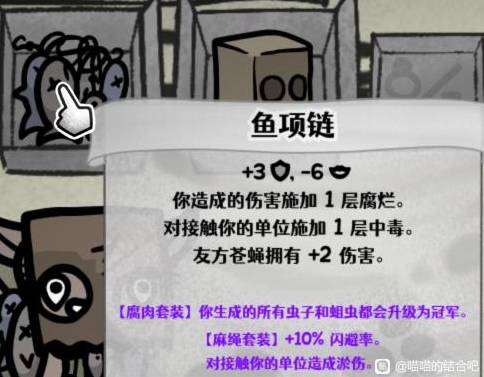 出装核心:鱼项链(FishNecklace):屠宰和全体成员向我看齐两个技能都可以挂腐烂debuff