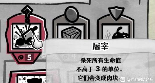 屠宰:杀死所有生命值不高于3的单位并变成肉块