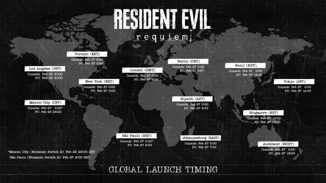 根据发售时间地图,生化危机9:安魂曲主机端在东亚各国的解锁时间皆为2月27日凌晨0点,因此在国内的解锁时间点大概率也是同样。而在PC端则有所变动。