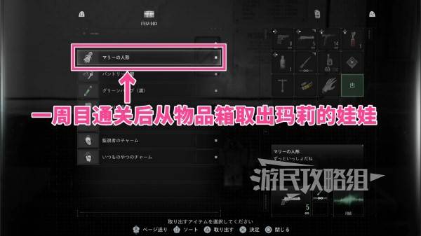 获得【玛莉的娃娃】后,将其留在物品箱中并通关完整的主线剧情。通关后读取在步骤⑥时创建的手动存档,从物品箱中取出【玛莉的娃娃】。