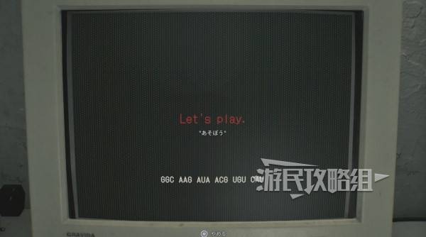 分析完成后,显示器上会显示【Let's play】和【GGC AAG AUA ACG UGU CAU】的代码。并且【研究主任室】的机关盒将可以重新操作。