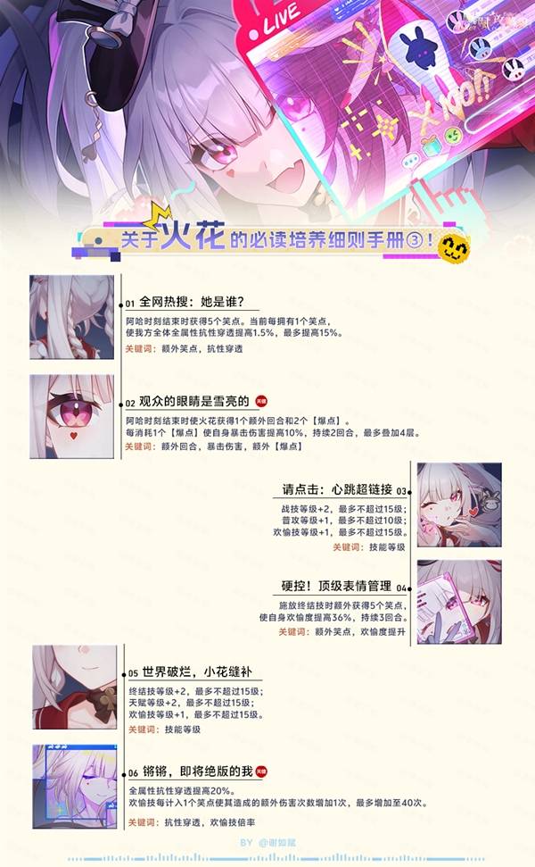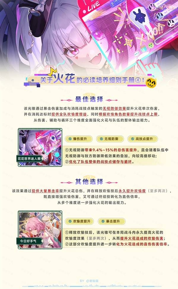 崩坏星穹铁道4.0下半上线了火花卡池,作为第二位欢愉角色,可以和爻光组成配合。下面请看由"谢如赋"带来的崩坏星穹铁道火花全方面培养攻略,包含机制解析与出装配队等内容,希望对大家有用。
