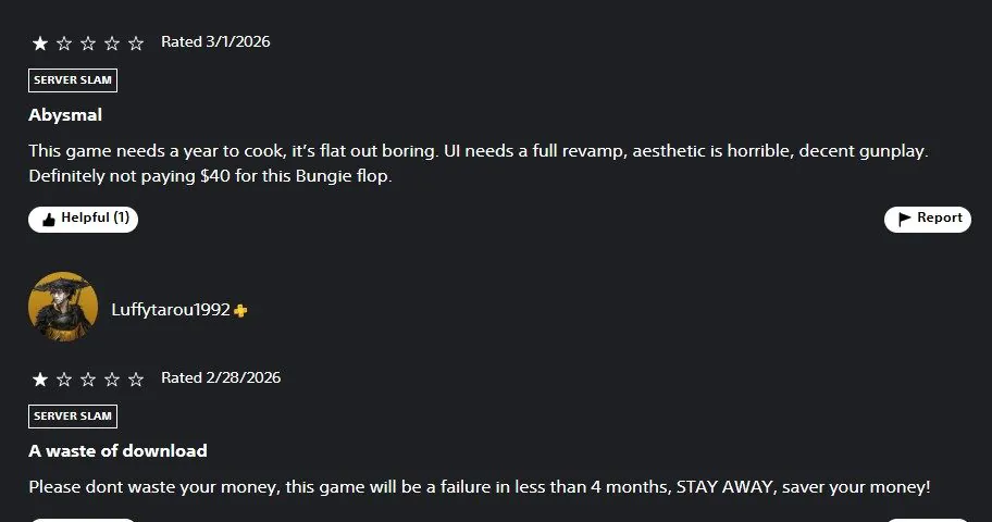 近日,Bungie为马拉松开启了BETA公测,以测试服务器强度,但外媒报道称这款极具争议的游戏在PS商店上的评分只有3.04星,甚至要低于PS最烂的第一方游戏星鸣特攻(3.5星)。