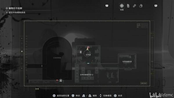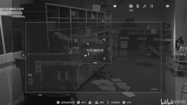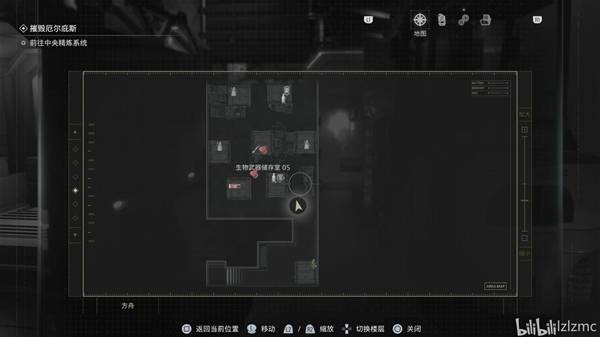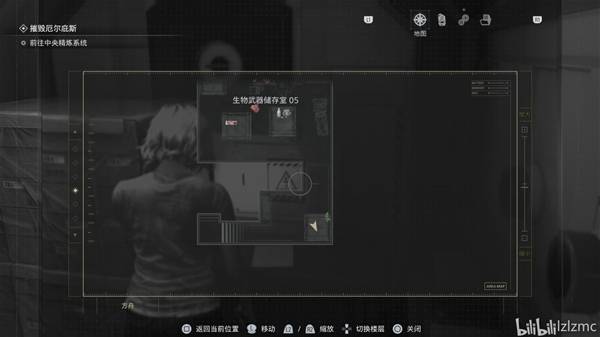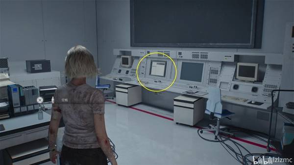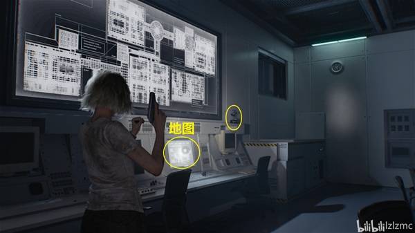 生物武器储备室05向北走进入控制室,如图控制室的控制台右侧,使用手枪打掉最后一个黑白浣熊先生25,同时获得奖杯:黑白色的淘气回忆。旁边亮着的屏幕调查后获得"方舟研究区01-02平面图"地图。