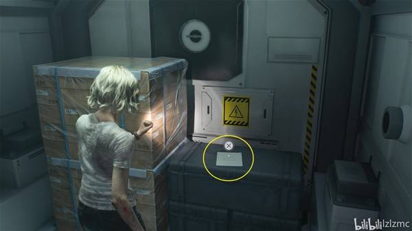 格蕾丝篇剧情,往前走到头调查高台触发推人剧情,钻入通风管然后踢开盖子下去,一路往前走上楼梯,右边有个木箱打碎拿到空瓶。
