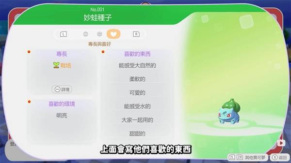 玩家可以通过查看宝可梦图鉴,上面有些宝可梦喜欢的东西。