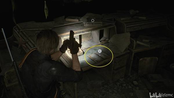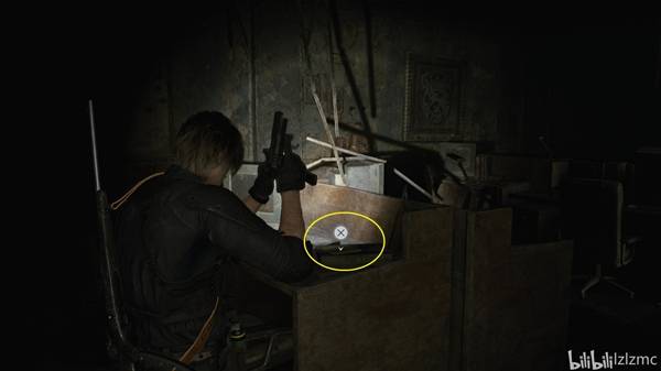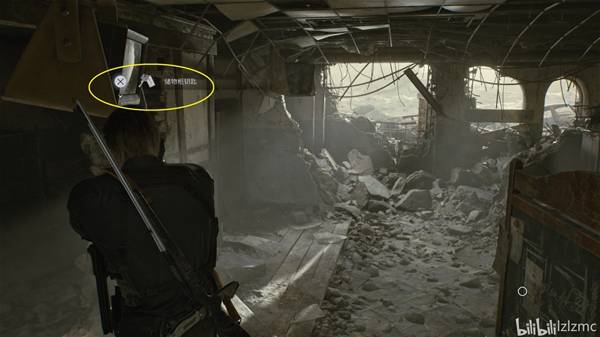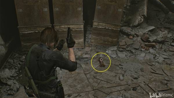 指挥室西侧,如图废墟瓦砾里,使用手枪打掉黑白浣熊先生21。出指挥室往南走,遇到陈年老丧尸,打倒后继续前进来到接待处,使用手枪打掉吊扣降下梯子。
