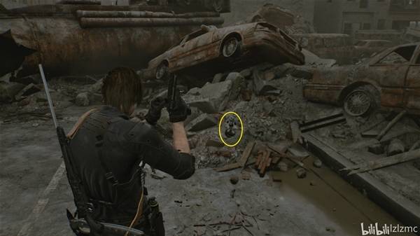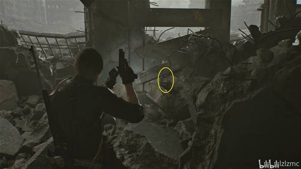 就在浣熊市中心入口的最西侧,如图废墟上,使用手枪打掉黑白浣熊先生20。