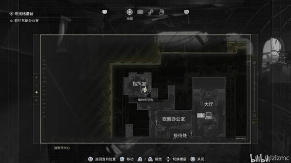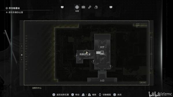 从图书馆回到1楼接待处,使用千斤顶出去到大厅,再来到大厅东南方使用千斤顶,开门后往前走剧情。