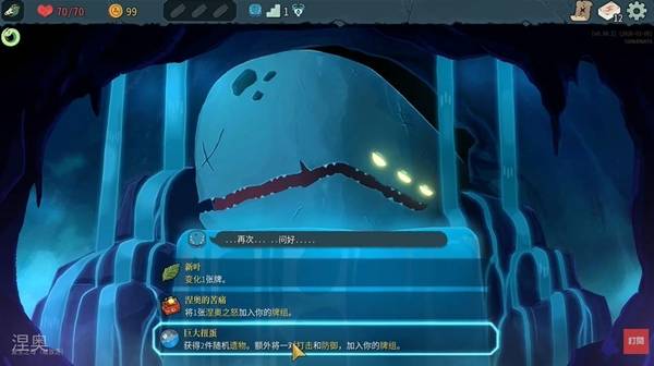 每一层boss是一开始就决定了的,例如这边看到最后的boss是仪式兽,它在150血会自身晕眩停止行动,但后续也会进化出晕眩技能,让我们该回合只能使用1张卡牌。对抗时可以优先保留虚弱及格挡药水,以免弱势时期被打死。