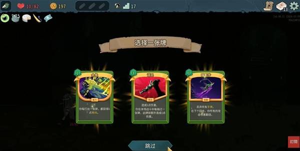 首先是最重要的游戏核心,那就是精简牌组。你绝对不能每场战斗结束后都拿牌,因为当你的卡组越多张牌,抽到强力卡或核心牌的机率就越来越低。只要你决定好这一场要玩的流派后,如果三张奖励卡都跟你的流派无关,哪怕是金卡也麻烦你直接跳过奖励。