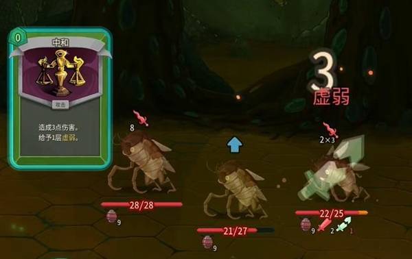 因为游戏的计算方式是向下取整。以这边为例,分别有一只打3段3伤害和 1击8伤害的臭虫,虚弱多段攻击的会让伤害由9变6,但虚弱8点单击伤害同样变成6,因此虚弱多段攻击单位更能省血量。