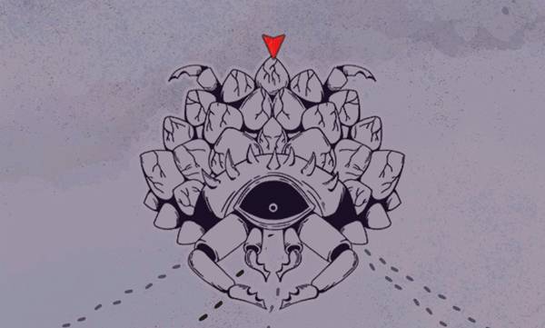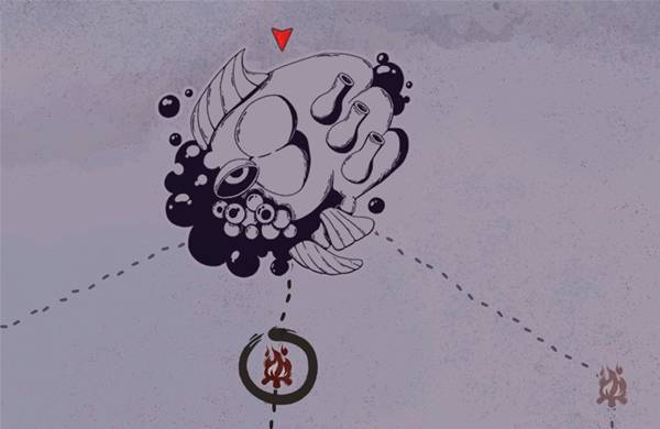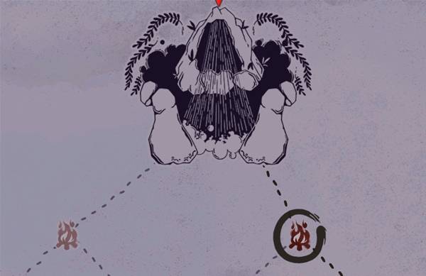 图标识别:石头加蒸汽状的组合,两边的草,小二第一眼看成巨兽在哭泣了。