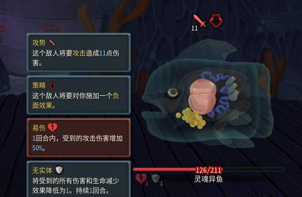 主要是有个滑溜状态,拥有9次被攻击强制变为1点生命值逆天状态,对于打单体爆发流派来说,这就是噩梦。同时会重击塞伤口,动画也很有意思,尾巴变长伸到我们的头上,也会持续成长加力量。