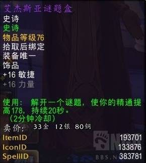 主动饰品首选艾杰斯亚谜题盒(来自大秘境艾杰斯亚学院)(2分钟主动饰品需要手动读条打开)