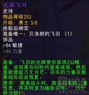 光耀飞羽/幽影羽毛(来自团本进军奎尔丹纳斯的老一)(较为稳定的一个数值饰品)