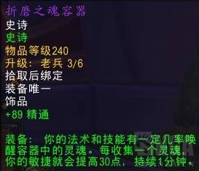 饰品:由于谜题盒提供精通,2分钟比较好的是地下堡的混乱之瓮和时空漫游奥杜尔的饰品,但是由于比较难获取所以这里推荐使用2分钟羽毛或1.30旗子(都为急速饰品)