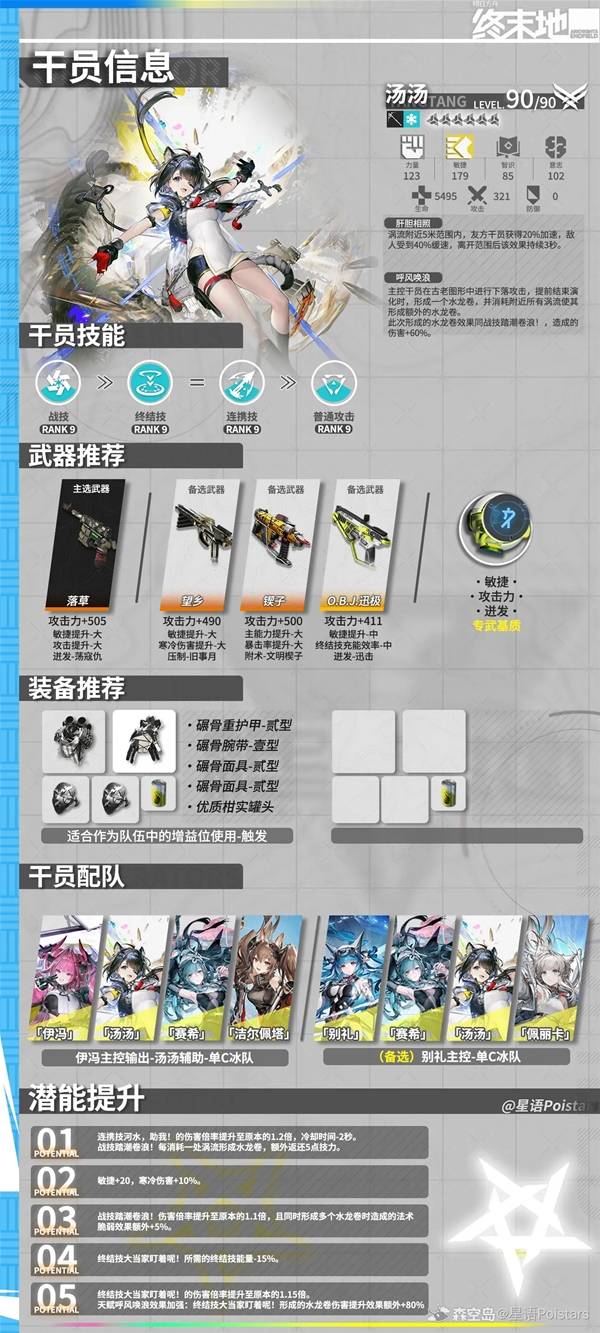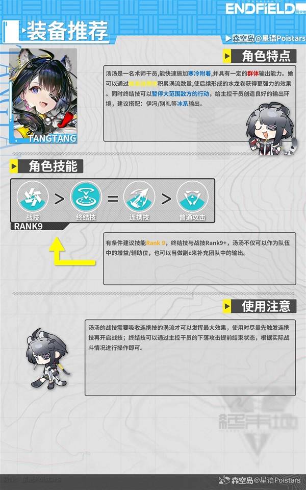 明日方舟终末地1.1版本新角色汤汤已经上线,那么汤汤要如何进行培养呢?下面请看由“mirara米拉”带来的明日方舟终末地汤汤详细培养一图流,一起来看看吧。