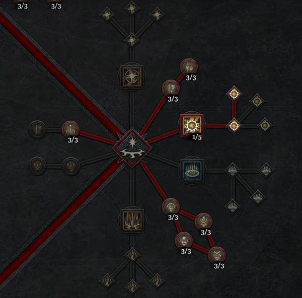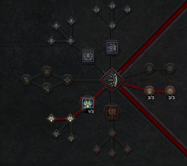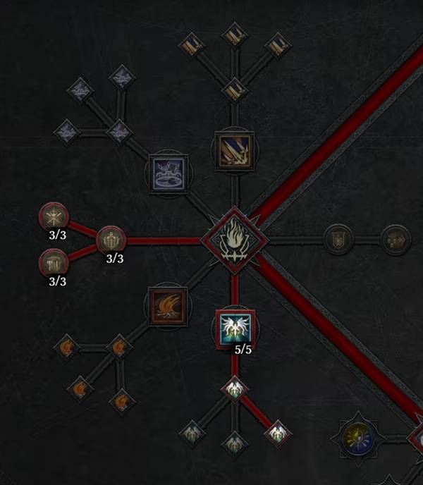 注意:巅峰盘优先连传奇节点拿增伤,雕文可以先点15过渡,因为推荐是刷到[黎明之火]后转型为光环玩法,这套飞翼只是用来快速成型。