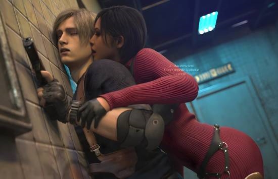 这张同人图中,艾达王将里昂直接按在墙上,二人的姿态氛围感拉满,尽显暧昧张力。