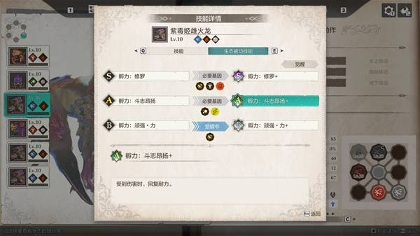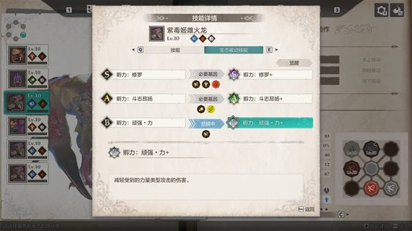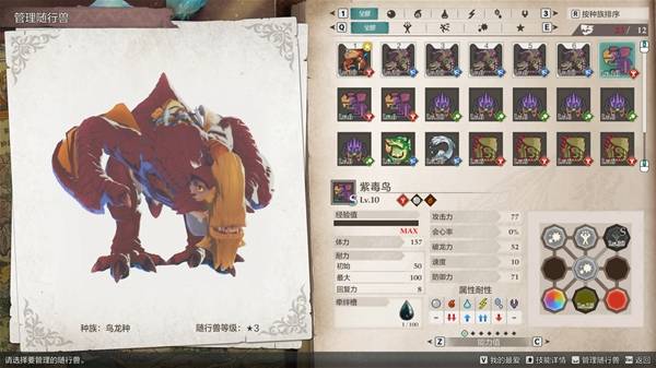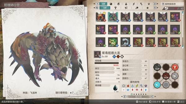 对了,其实本来打算用5棘龙凑"边境的王者之师"队伍速通的,但为什么最后选了紫毒姬呢,因为同样是全体火系必杀,棘龙和紫毒姬的威力、破龙力一模一样,但是没有增伤效果,我看这棘龙也是被完爆了。