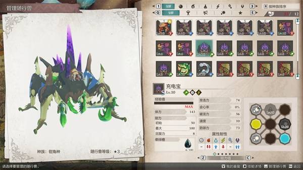绝海怒涛(水-多段攻击),剧毒横扫(无-速度),充雷(雷-回复耐力)
