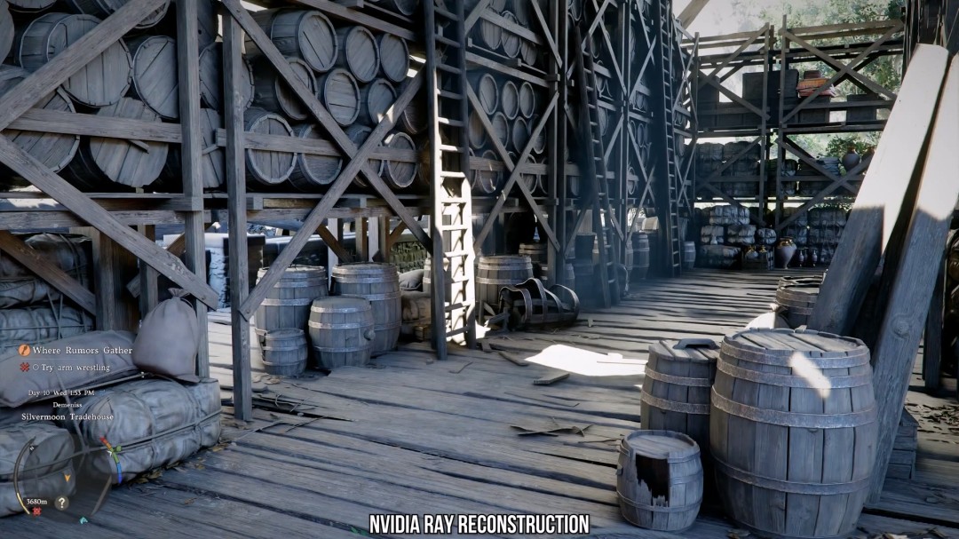 Digital Foundry认为,红色沙漠PC玩家可获得最强大的视觉升级:虽然光线追踪在这款游戏中已经非常出色,但如果玩家使用AMD的光线再生(Ray Regeneration)或英伟达的光线重建(Ray Reconstruction),画面效果将会得到显著提升。事实证明,在这款游戏中,光追降噪(RT Denoising)远比你想象的要重要得多。