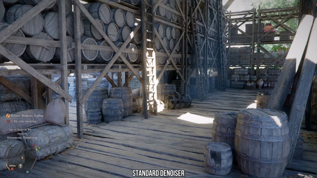 当使用这些ML(机器学习)降噪技术时,光照质量的提升非常明显。很多时候,画面的变化看起来更像是"光追开与关"的区别,而不仅仅是更换了一种降噪算法。
