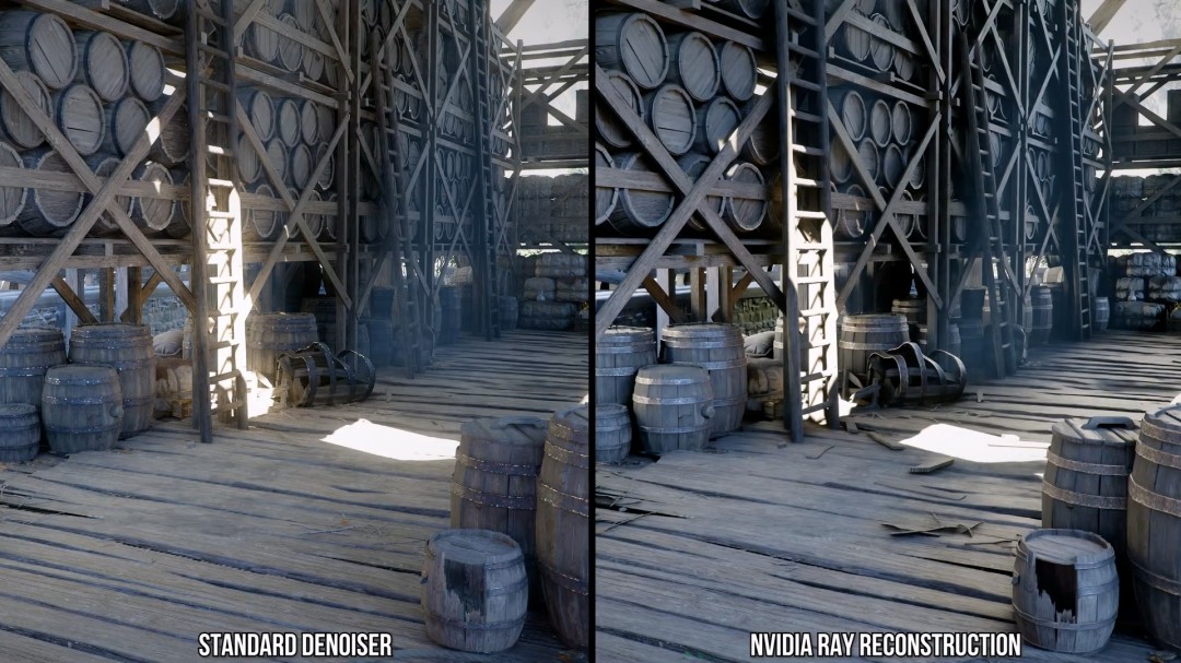 借助Ray Reconstruction(光线重建)和Ray Regeneration(光线再生)这样的机器学习技术,游戏可以提供一种极大改善画面质量的高级光照模式。一旦体验过这种效果,再回到传统降噪方式往往会明显感觉到差距。