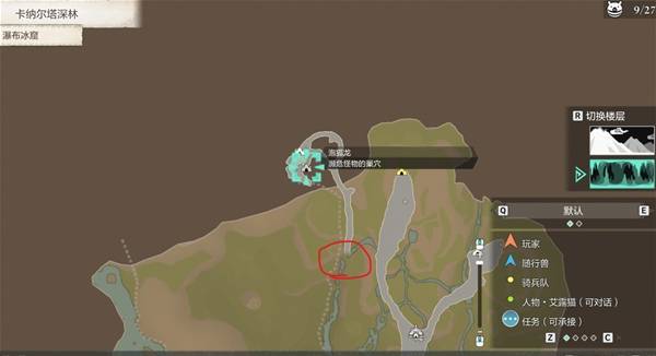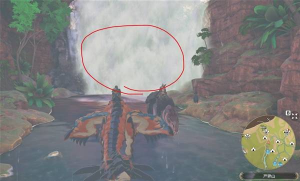 然后位置如下图,我们从红圈的地方(那里是一块瀑布),穿过瀑布,隧道到底就是了。