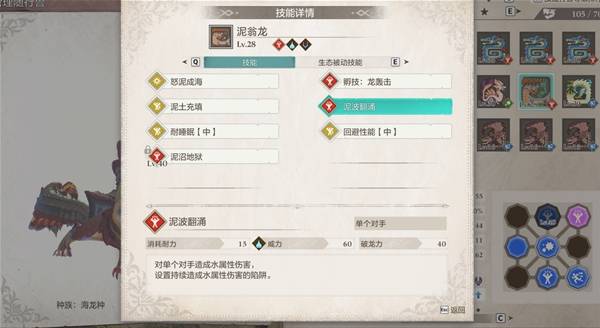 首先我们准备一只泥翁龙和一只会攀爬的随行兽(比如牙猎犬),泥翁龙主要用泥波翻涌或者泥沼地狱,布置陷阱来灭爪子的火,生存压力比较大,最好备点干劲香精和恢复药。