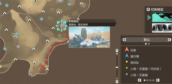 我们在右下角的这个猫站开始出发,沿着下图红线走到底就是了(记得备一只攀爬随行兽如牙猎犬)