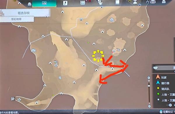 从传送点这里按照箭头飞,可以飞进一条峡谷,顺着走到尽头爬上去就是了,打法就是角龙钻地后会出现三个坑,像打地鼠一样三选一用流星锤敲其中一个坑就行了,只要敲中角龙要出来的坑就赢了,因为我是一次过的所以没看出来三个坑有啥区别,欢迎大佬补充,实在不行就反复多试几次,堆量总有一次能打中的。